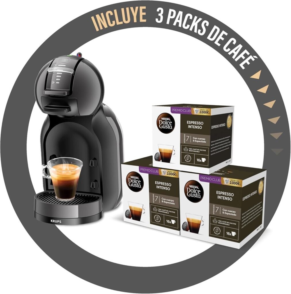 Krups Nescafé Dolce Gusto Mini Me, negro, automático, calidad profesional, presión 15 bares, gran variedad de bebidas frías y calientes, 0.8 L, 1500 W, incluye 3 packs de café intenso, KP1238CAS