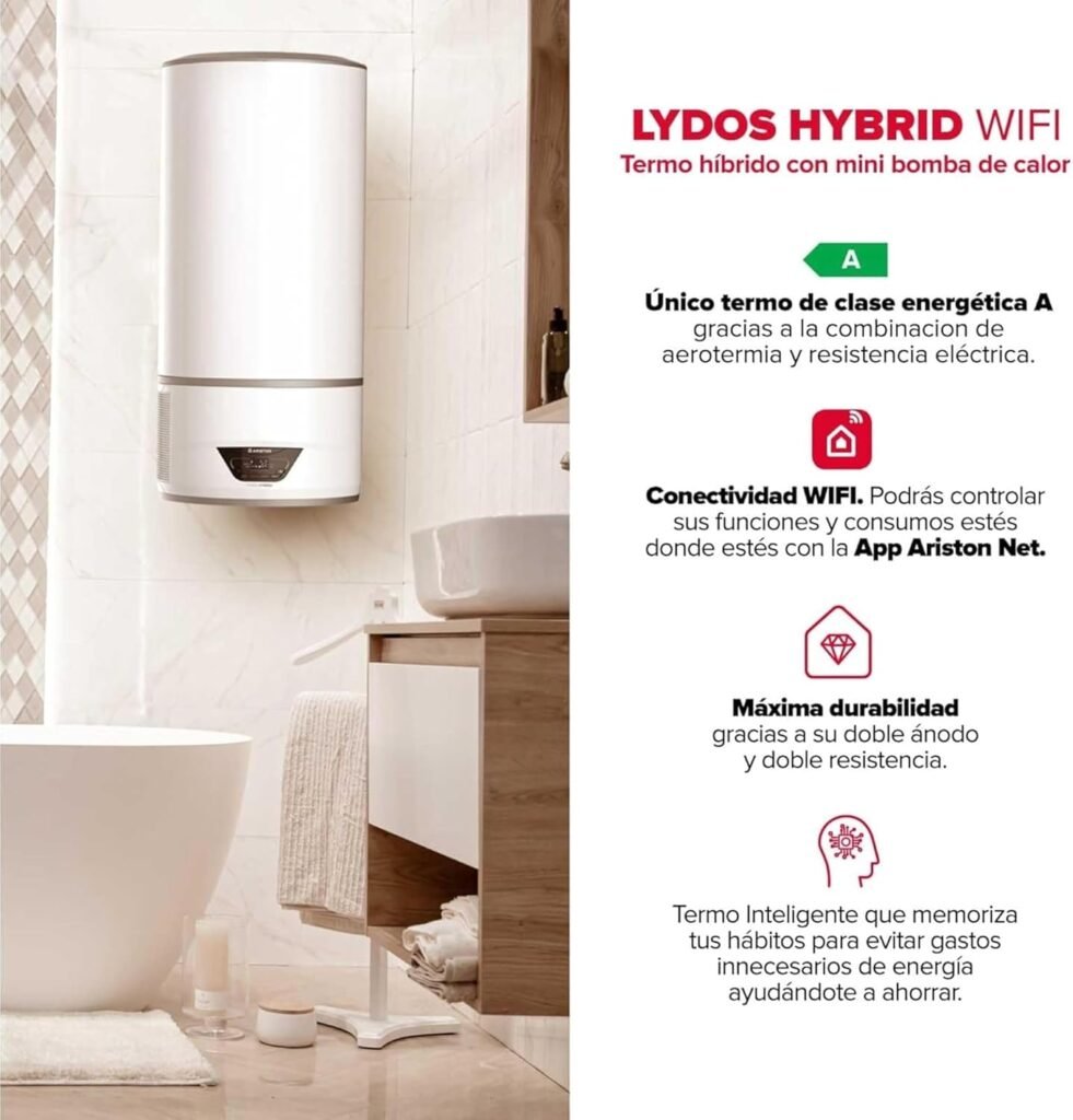 Si buscas dejar de tirar dinero hoy mismo, el Ariston Lydos Hybrid es nuestra recomendación. Es el primer termo con inteligencia i-Memory que aprende tus horarios para ahorrar hasta un 50% frente a uno convencional.